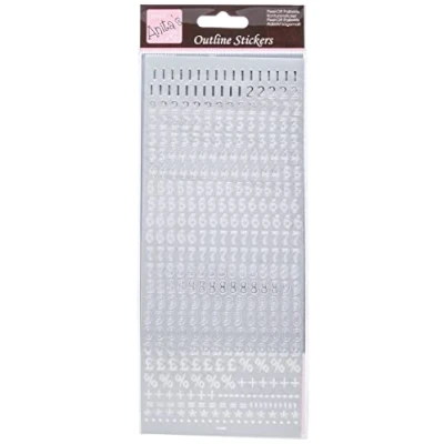 Anitas Outline Stickers, Small Numbers, Silver, For Scrapbooking, Card Making, Kids Play, Homework, Art, Craft, Embelish, Decorative, Paper, Card, Glass, Metal, Plastic, Foam