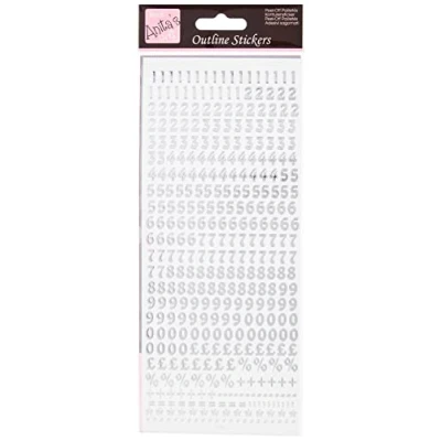 Anitas Outline Stickers, Small Numbers, Silver on White, For Scrapbooking, Card Making, Kids Play, Homework, Art, Craft, Embelish, Decorative, Paper, Card, Glass, Metal, Plastic, Foam