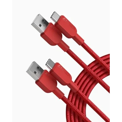 Anker Charger Cable [2 pack, 10ft], 310 USB A to Type C, Nylon Fast Charging for iPhone 17/16/15, iPad Pro, Samsung Galaxy, and More (USB 2.0, Red)