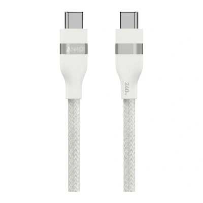 The Anker USB-C to USB-C Braided Cable 0.9M (240W, White) delivers super-fast charging, powering a 16-inch MacBook Pro to 50% in 26 minutes, and features a soft, ultra-durable, eco-friendly braided design made from 100% recycled materials for over 10 years of reliable use.