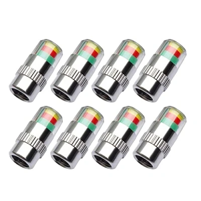 Material of car tyre pressure indicator caps: Chromed Metal+PC;Size:1cmX2.5cm;Visually alerts you when the tire pressure is low Car tyre pressure monitor valve caps help to avoid premature tire wear or blowouts from under-inflated tires,increases fuel efficiency, safety and control, extends tire life Green/yellow/red system indicate level of proper tire inflation.According the recognize color to display the pressure of the tire,Green shows that tire pressure is normal Yellow shows that the pressure is 10% lower than standard @@@KF8y3UkY0jItnxokZ7ucH9qq738F47k7@@@ alerts you that the pressure is 25% lower than standard Fit for 36PSI(2.4Bar),applicable to car,motorcycle,bicycle and so on.WARNING: When removing a air valve cap. make sure that you do not lose the black washer. They are inclined to fall out and are very difficult to find again. It is advisable to remove them before your car is serviced at a garage. Package : 8 x Tyre Pressure Indicator Valve Stem Caps.Notes:When you make automatic car wash,remove these air caps would be better.