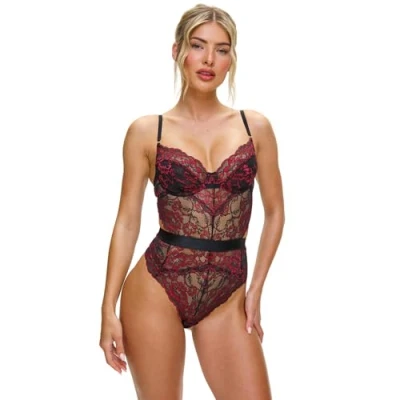 GORGEOUS LACE BODY TO SHOWCASE YOUR CURVES – Feel incredible in the 'Hold Me Tight' Body Suit, now with an improved fit. Combining delicate lace with a captivating shape, this elegant piece is a must-have for your lingerie collection IRRESISTIBLE HOURGLASS SHAPING – Cinched at the waist with high-shine elastic, this body creates a beautifully sculpted silhouette. The Brazilian-style panties and cut-out back enhance your curves, while scalloped edging adds a pretty finishing touch LINGERIE DESIGNED TO FIT & FLATTER – Underwired cups with soft lining at the base offer a little more coverage, while adjustable shoulder straps and a secure hook-and-eye fastening ensure a comfortable, tailored fit CONSCIOUS GLAMOUR – This shapewear bodysuit is made from delicate lace that contains 50% recycled fibres, letting you confidently embrace your sassy side while making a conscious choice 50 YEARS OF ANN SUMMERS – Since 1972, we've been on a mission to empower our customers in the bedroom, bringing you confidence and satisfaction. We prioritise discretion too, so rest assured that all our parcels are free from branding or logos