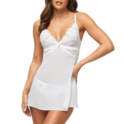 IRRESISTIBLE LACY CHEMISE LINGERIE - Embrace your iconic side with the Icon Chemise. Made from floaty chiffon, this babydoll dress sparkles with exquisite embroidery and sequinned floral lace, so you look heavenly and feel utterly irresistible FLIRTATIOUS FINISHING TOUCHES - The showstopping plunge neckline showcases your curves, with a jewel sparkle and under-bust lace for a playful touch. Pair this baby doll dress with matching Icon womenís lingerie and unleash your inner goddess DESIGNED TO FIT & FLATTER - This babydoll nightwear is all about comfort. With adjustable straps, soft-lined cups for subtle coverage, and a satin under-band, the flattering fit of this negligee ensures you look and feel fabulous all night PERFECT FOR ANY MOOD - Whether you're planning a romantic night in or simply unwinding at home, this gorgeous baby doll lingerie easily adapts to your mood, offering intrigue and style no matter the moment 51 YEARS OF ANN SUMMERS - Since 1972, we've been on a mission to empower our customers in the bedroom, bringing you confidence and satisfaction. We prioritise discretion too, so rest assured that all our parcels are free from branding or logos