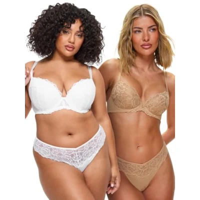 Ann Summers Valentines Sexy Lace Padded Plunge 2pp White & Nude