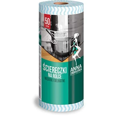 Anna Zaradna 012961 high-quality wiping cloth on a roll of 50; soft and gentle kitchen roll as a perfect aid for all your housework They can be used both wet and dry Easy to clean table, worktop, sink, stove, tiles, crockery or kitchen or bathroom fittings Thanks to their exceptional absorbency, they are also ideal for drying fruit, meat and vegetables from excess water Thanks to the perforation, the cloths can be easily and quickly removed from the roll. The cloths are reusable and machine washable. Length: 36 cm; Width: 25 cm; Quantity: 50 pieces; Colour: blue wave