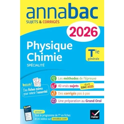 Annales du bac 2026 Annabac Physique Chimie Tle générale (spécialité): sujets corrigés & méthodes de l'épreuve