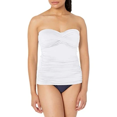 Anne Cole Women's Twist Front Shirred Bandeau Tankini Top, White, Small