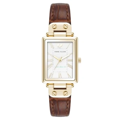 Anne Klein Women's Sustainable Croco Grain Leather Strap Watch, AK/5152,Brown/Gold