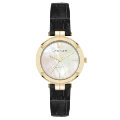 Anne Klein Women's Sustainable Leather Strap Watch, AK/5150,Black/Gold