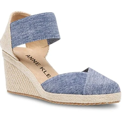 Anne Klein Women's Zoey Wedge Sandal, Denim, 7.5 UK