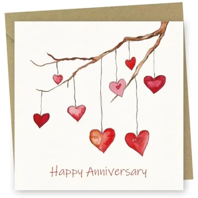 Anniversary Card. Branch of Hearts Design. Card with Kraft Envelope. 150x150mm when folded. Blank inside. Made in Britain.