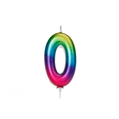 Anniversary House Age 0 Metallic Numeral Moulded Pick Candle Rainbow