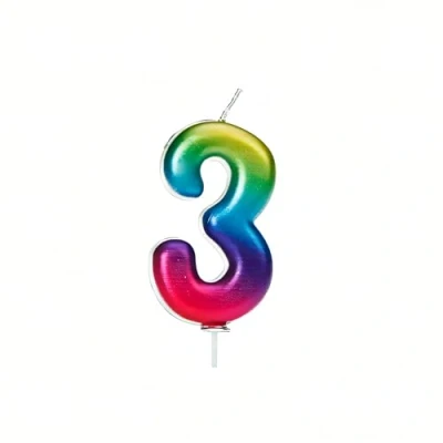 Anniversary House Age 3 Metallic Numeral Moulded Pick Candle Rainbow