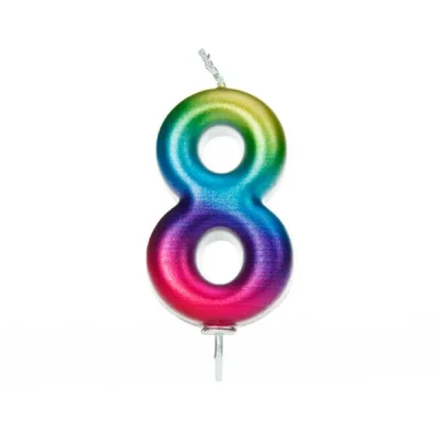 Anniversary House Age 8 Metallic Numeral Moulded Pick Candle Rainbow