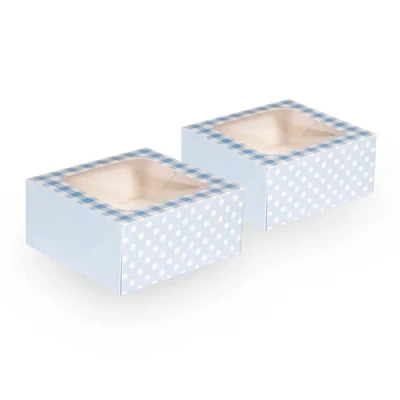 Anniversary House Blue Gingham Square Treat Boxes with Window Pack of 2