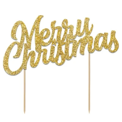 Anniversary House Glitter Merry Christmas Cake Topper Gold