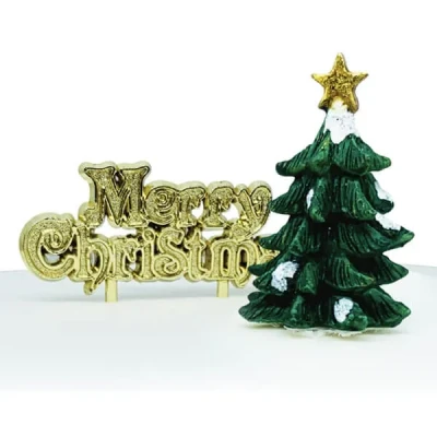 Anniversary House Green Tree Resin Cake Topper & Merry Christmas Motto