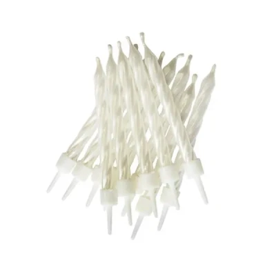 These white pearlescent candles by Anniversary house arrive in a pack of 12 and come complete with holders for placing the candles securely in the top of a cake.The white pearlescent candles are great for parties and celebrations and can be mixed and matched with other decorations in the collection.Each of the candles are 7.5cm in height.