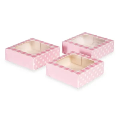 Anniversary House Pink Gingham Small Square Treat Boxes with Window Pack of 3