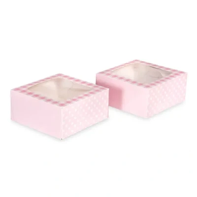 Anniversary House Pink Gingham Square Treat Boxes with Window Pack of 2