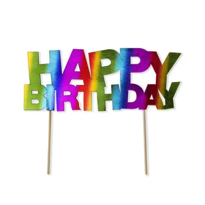 This rainbow 'Happy Birthday' cake topper by Anniversary House is the perfect finishing touch for celebration cakes for those special occasions.The rainbow cake topper is premium quality as is finished in a metallic foil finish and a pink finish on the back. Held up with two strong bamboo wood sticks.