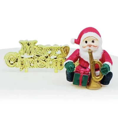 Anniversary House Toy Shop Santa Claus Plastic Cake Topper & Gold Merry Christmas Motto