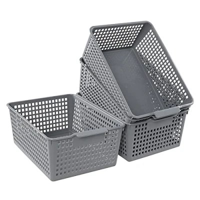 Annkky Large Baskets, Rectangular Plastic Storage Basket, Set of 4