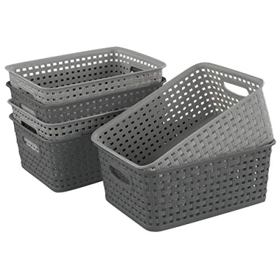 Annkky Plastic Woven Basket Set of 6, Weave Storage Baskets