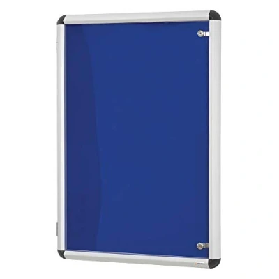 Dimensions: 600x900mm. Suitable for use with pins or velcro. Can be mounted portrait or landscape. Wall fixings included. Twin locks for security with matching keys. Colour: Blue.