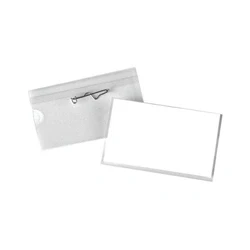 EurofficeDimensions: 40x75mm. Supplied with insert cards. Side loading for ease. Easily attaches to clothing with pin. Pack of 100.