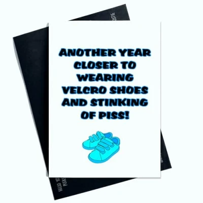 Another Year Closer To Wearing Velcro Shoes And Stinking Of Piss Funny Joke Card Birthday Card For Him For Her Novelty Greeting Card AP33
