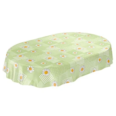 ANRO Oilcloth Tablecloth Camomile Patchwork Green Oval 200 x 140 cm Edged
