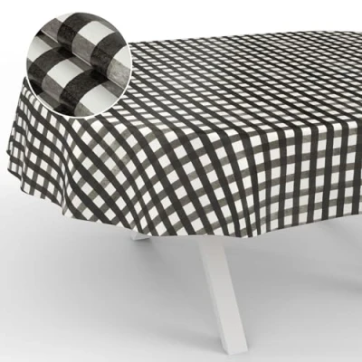 ANRO Oilcloth Tablecloth, Washable, Oilcloth, Garden Outdoor, Indoor, Oval, 180 x 140 cm, Cut Edge, Chequered, Black
