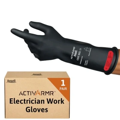Ansell ActivArmr Electrician Work Gloves, Electrical Protection Class 0 (1000V), Insulating Natural Rubber Latex Industrial Safety PPE, 14 Inches, Black, Size XL (1 Pair)