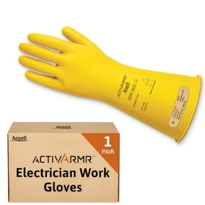 Ansell ActivArmr Electrician Work Gloves, Electrical Protection Class 00 (500V), Insulating Natural Rubber Latex Industrial Safety PPE, 14 Inches, Yellow, Size M (1 Pair)