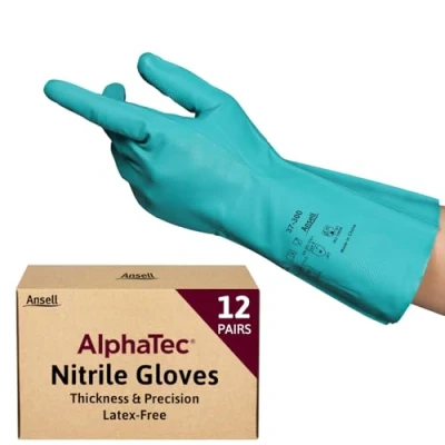 THICKNESS AND PRECISION - Thanks to a 0.2mm thickness design, these ALPHATEC 37-300 precision, accuracy and grip are guaranteed in all different environments. The protection extends also to the wrist thanks to the long cuff LIGHT CHEMICAL PROTECTION - Optimal in conditions with low risk of chemical contamination. The material NBR offer protection against light acids, greases, oils and liquids splash and contamination IDEAL FOR CLEANING & FOOD PREP - Designed to fit in working environments consisting of janitorial use and cleaning, as well as in food contact. Perfect for professional and domestic cleaning, especially when using aggressive chemical detergents SILICONE and LATEX-FREE GLOVES - The nitrile formulation of these gloves assures protection to type 1 allergies, for all those who always have complaint or inconvenience in wearing the glove for long time AVAILABLE IN DIFFERENT SIZES and COLORS - Engineered fit to allow optimum balance of fit and flexibility, this glove is available in blue, green or yellow and in multiple sizes, S, M, L and XL sizes. Gloves come in multipacks of 1 to 12 pairs