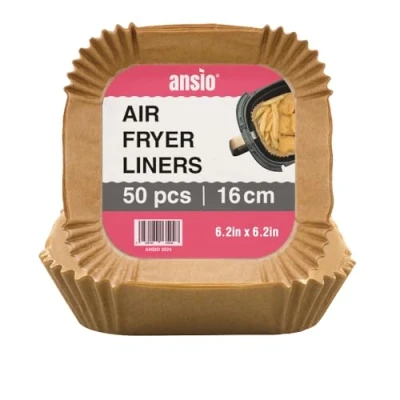 Natural and Safe Materials: Made from unbleached, FSC-certified, BPA-free wood pulp with a double-sided non-stick silicone coating for safe cooking. Ideal Size for Perfect Fit: Inner size of 16cm x 16cm x 4.5cm, outer size of 20cm x 20cmx 4.5cm, designed to fit perfectly at the base of popular air fryer brands. Greaseproof and Non-Stick: Keeps food from sticking, ensuring an effortless cooking experience without residue left behind. High-Temperature Resistant: Safe to use up to 230°C, suitable for frying, baking, and grilling without worry. Mess-Free Cooking: These liners make cleaning up a breeze – simply dispose of the liner after cooking and save time on scrubbing! Caution for Safe Use: Always place enough food to weigh down all four corners. Do not use empty paper during preheating. Pack of 50: Includes 50 disposable liners, ideal for busy kitchens, helping you cook conveniently while being mindful of the environment., Manufacturer: ANSIO