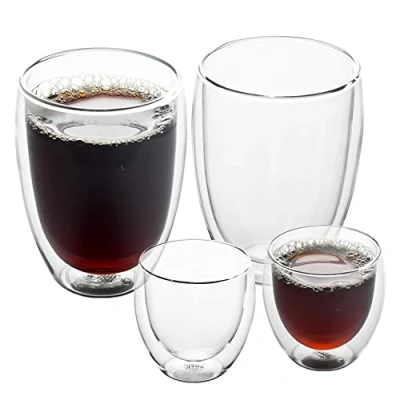 GLASS COFFEE CUPS - This stylish and lightweight borosilicate glass can withstand temperatures from -50℃ to +200℃. These clear glass cups can maintain their temperature longer, so you can enjoy sipping your favorite cold or hot coffee. UNIQUE DOUBLE WALLED COFFEE CUPS - Keep your fingers safe and relaxed in this insulated coffee cup; it prevents condensation outside your glass cups. Hold your cups comfortable without getting your hands burnt! HANDCRAFTED FOR COFFEE LOVERS - The design of these special double walled glasses is carefully handmade by our artisans. You will experience the quality that our craftsmen put into these clear glass coffee cups. MULTIPURPOSE INSULATED GLASSES - You don't have to buy different cups for your hot and cold beverages; this insulated coffee cup got you! It is perfect for your coffee, soup, tea and chocolate drink. PERFECT GIFT - These classic, unique handmade double walled coffee cups present a clear and smooth look; that could be an excellent gift to send to your coffee lover friend for Christmas, birthday, and housewarming.