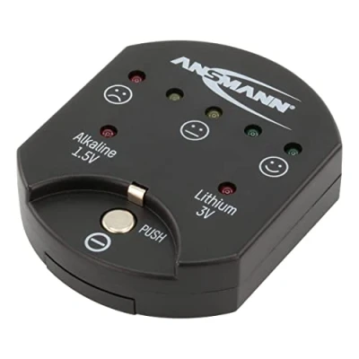 CAPACITY INDICATOR: This compact and handy battery tester is the ideal capacity checker for alkaline and Lithium coin cells. Easy to use, this coin tester has LED lights that display the capacity of the battery AUTOMATIC RECOGNITION - The tester automatically detects the voltage (alkaline or lithium) by placing and pressing the button cell, and displays the voltage via the corresponding LED PACK OF 1: This ANSMANN coin cell tester comes in a pack of 1 and measures 55x45x13.5mm and weighs 17g LED DISPLAY: Capacity display via 5 LEDs, the current capacity of the cell is tested under load and indicated by the LEDs (red, orange, green). Including CR1620 button cell for the operation of the test device EASY TO USE: This pocket-sized coin cell tester is simple and easy to use. Ideal for checking how full or empty cells are and checking precisely when batteries can still be used and when they must be replaced