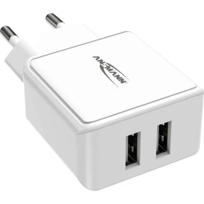 ANSMANN 2 Port Dual USB Charger 2.4A with Smart IC Charging Control, Power Supply Especially Suitable for iPhone, Samsung Galaxy, Huawei, Xiaomi, Tablet, GoPro, e Book Reader, etc.