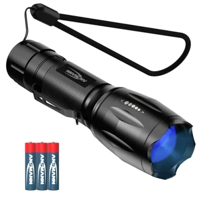 Ansmann 400nm Continuously Focusable 4 Light Modes UV Lamp LED Flashlight for Cleanliness Control Amber Hunting Bait Finding Fishing Black