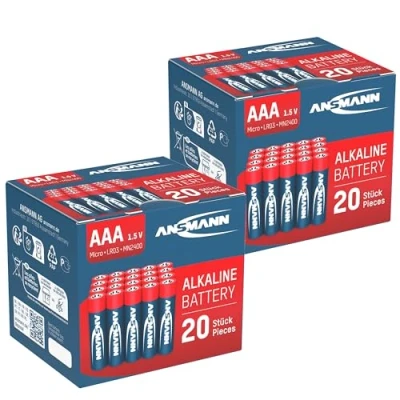 ANSMANN brand quality for everyday use For everyday use in devices with low energy consumption, Ideal for devices such as remote controls, wall watches, alarm clocks, flashlights Wide range of temperature from -20°C to +50°C Scope of delivery: 2x Box of 20 Alkaline Micro AAA Batteries