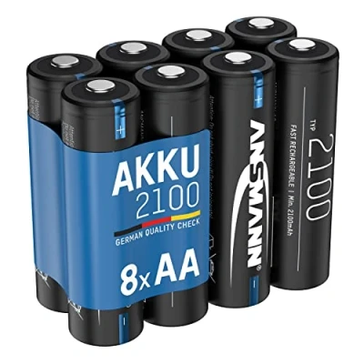 LONG LASTING POWER: This pack of 8 AA type batteries is ideal for devices with high power consumption including digital equipment's, cameras, flash units, speakers, microphones, flashguns - These batteries guarantee long-lasting power HIGH SAFETY STANDARDS: These rechargeable batteries comply with current valid EU directive and meet the highest requirements for safety and longevity with good cycle stability. Heat & cold resistant from -20 ° C to + 65 ° C making them ideal for domestic, industrial and professional use PACK OF 8: This pack consists of 8 x AA Size Mignon NiMH 2100mAh ANSMANN rechargeable batteries. These batteries have been successfully tested for electrical, thermal, geometric and mechanical requirements RECHARGEABLE: These rechargeable batteries can be charged with high charging current resulting in shorter charging time. These batteries also guarantee longer running time all thanks to the high capacity SAVE MONEY: These NiMH batteries can be recharged many times saving you money and reducing waste! These batteries are an economical replacement for disposable / alkaline batteries - These batteries retain 80% charge for up to one year in storage OTHER USES: Use with trackball, Apple mouse keyboard & trackpad, garage door remote controller, flashlight, kids toy, electronic pets, radio controlled car kids, alarm burglar sensors & system, alarm clock, remote control, flash gun, flashgun, Glade auto spray air freshener, Airwick air freshener, diffuser, thermometer, torch, mini sewing machine, travel electric razor, shaver, eyebrow nose & facial trimmer, handheld fan