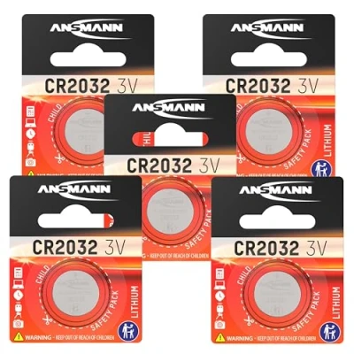 Ansmann CR2032 3 V Coin Cell Button Battery for Remote Control, Door Opener, Medical Equipment (Pack of 5)