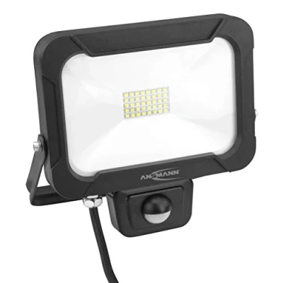 HIGH QUALITY: This ANSMANN 20W WFL1600S with integrated rotating bracket & 20cm H05RN-F cable for firm and flexible connection with low mechanical load in dry, damp and wet rooms is suitable for indoor and outdoor use. This high quality aluminium super bright flood light has a colour temperature of 5000K making it the ideal gadget for users with high quality requirements MOTION DETECTOR & LONG LASTING: This wall flood light with motion detector with a detection range of upto to 12m and a detection angle of 180° horizontally and 90° vertically. The lighting time can be set from 10 seconds to up to 10 minutes. This sensored floodlight shines bright at 1600 lumen with a beaming distance of __m and covers a ___cm² area SCOPE OF SUPPLY: 1 x ANSMANN wall spotlight with motion detector WFL1600S with rotating bracket and 20cm H05RN-F cable. The wall LED light measures 200 x 75 x 225mm and weighs 877g making it ideal for demanding everyday usages including workshops, construction sites, warehouses, houses, gardens garage etc ROTATING & FAST: This working flood light with sensor is rotatable all thanks to the hanging bracket and SMD LEDs take less than 1 second to start up to provide full power, meaning that the light delivers full power immediately when motion is detected SPLASH PROOF & ROBUST: Thanks to the robust aluminium, this flood light is splash proof IP54 making it suitable for use garages, workshops, warehouses and industries. This long lasting spotlight can be used in temperatures from -20 - 50℃