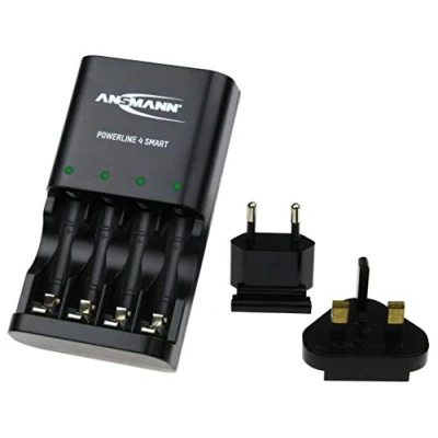 ANSMANN Powerline 4 Smart AA & AAA Battery Charger For NiMH NiCD Rechargeable Batteries with UK Plug and Multi LED Colour Display Fast Individual Charging Monitoring 3 Yr Warranty