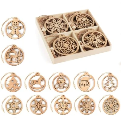 Christmas Wood Ornaments in 12 various patterns of wooden shapes, each one is unique and no duplicate. Predilled with natural jute string for easy hang up. Wooden snowflakes with perfect size 2.6 inch (65 mm) in diameter; approx 0.12 inch (3 mm) thickness. vintage wooden christmas decorations made from natural vintage wood, adding a touch of nature and beauty in the house. Reusable and can be used over and over again. Great Gift idea, wooden christmas ornaments coming with a wooden storage box(16cm * 16cm), easy for storage and giving as presents. Multi-purpose, wooden snowflakes for crafting and great for painting, card making, key chains, embossing, embellishment, party decorations, Christmas ornaments, wood crafts DIY and anything else that you can think of.