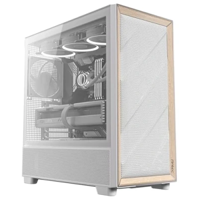 Antec Flux Wood White, 5 x PWM Fans Included, High Airflow Front Panel with Birch Wood, Type C, 420mm Radiator & Back Connect Motherboard Support, Up to 9 Simultaneously, Mid Tower E ATX PC Case