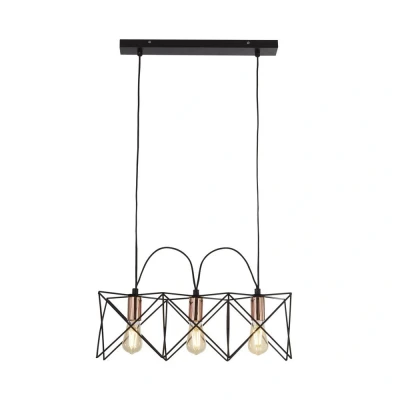 Anthea 3 Light Black Frame Ceiling Pendant with Copper Detail