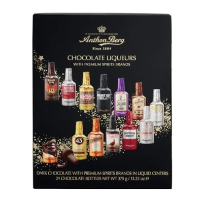 PREMIUM SPIRITS: Indulge in Anthon Berg’s decadent dark chocolate bottles filled with premium liqueurs from renowned brands such as Famous Grouse, Cointreau, Drambuie, Remy Martin, Licor 43 etc QUALITY CHOCOLATE: Made with premium 50% dark chocolate for a perfect taste experience and a delightful balance between the cacao and the liquid filling. Experience the perfect fusion of rich, crisp chocolate and smooth, liquid centres VARIETY: Anthon Berg Chocolate Liqueurs has the broadest selection of flavor experiences. There is no boring choice, only the thrill of discovering something unexpected. So, raise a toast to laughter, to stories worth sharing, and to conversations that linger long after the last bite GIFT IDEA: Treat someone special to this decadent set of chocolate liqueurs that combine rich chocolate with the finest spirits ASSORTMENT: A pack of 24 handpacked chocolates offering a delightful mix of flavours from renowned spirits brands for an exquisite taste adventure